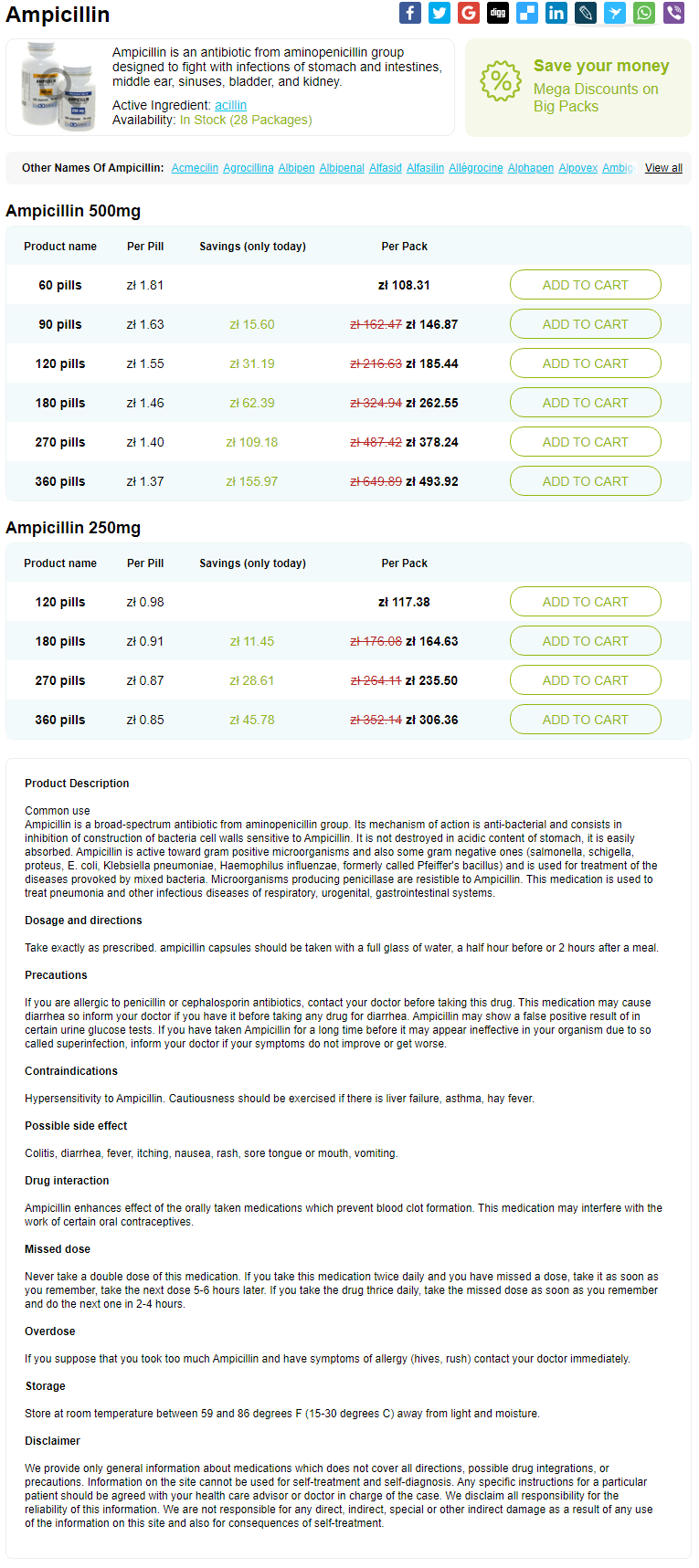 Pentreksil, Abetaten, Atsidotsiklin, anilina, Akrotsilin, Agnopen, Albertsilin, Amiil, Ametsillin, Ampen, Ampeksin, Ampifen, Ampilin, Ampiopenil, Amplenil, Amplital, Baktipen, Biampen, Binotal, Britapen, Broadotsilin, Tsimeksillin, Diatsiklin, Ditsillin, Domitsillin, Domipen, Eurotsillin, Fortapen, Grampenil, Istitsillin, Lifitsillin, Maksibiotik, Maksipred, Maurepas, Negopen, Opitsilin, Oratsilina, Penberin, Penibrin, Pentreks, Politsilin, Riomitsin, Rostsillin, Semitsillin, Sintelin, Sinpenyn, Totatsillin, Ultrabion, wampirzyca, Veksampil, Vidopen, Zimopen, Apo-AMPI, Mentsilin, Standatsillin, Dedoompil, Kampitsilin.