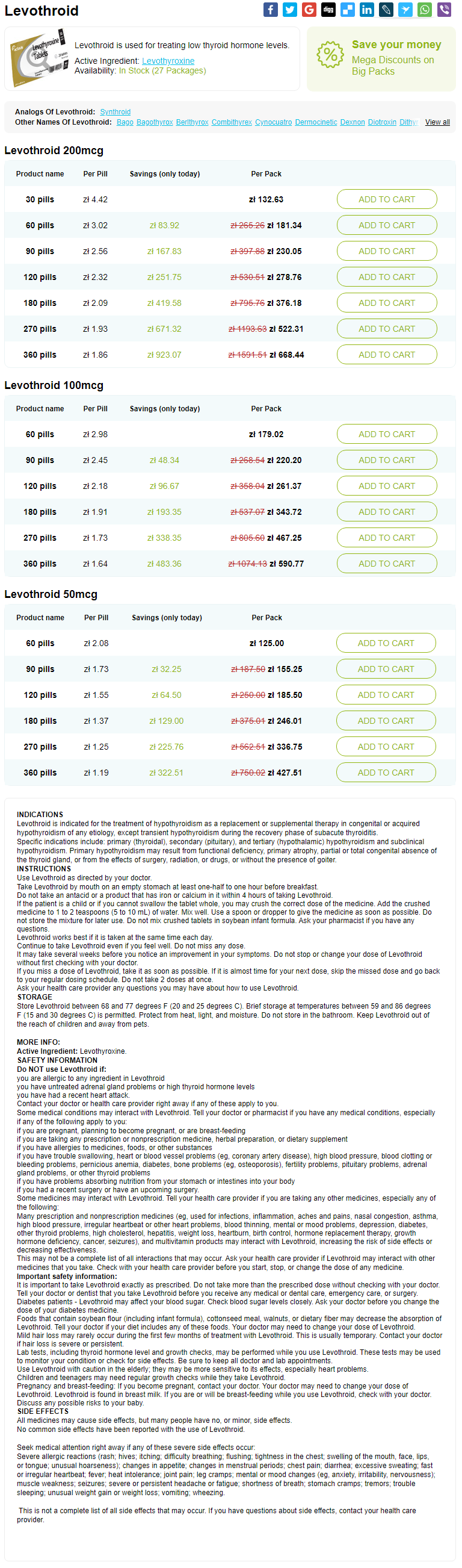 Traktuje lewotyroksyny niedoczynność tarczycy (niskie hormony tarczycy). Lewotyroksyny są również stosowane do leczenia lub zapobiegania wole (powiększenie tarczycy), który może być spowodowany przez brak równowagi hormonalnej, radioterapii i chirurgii, lub rak.